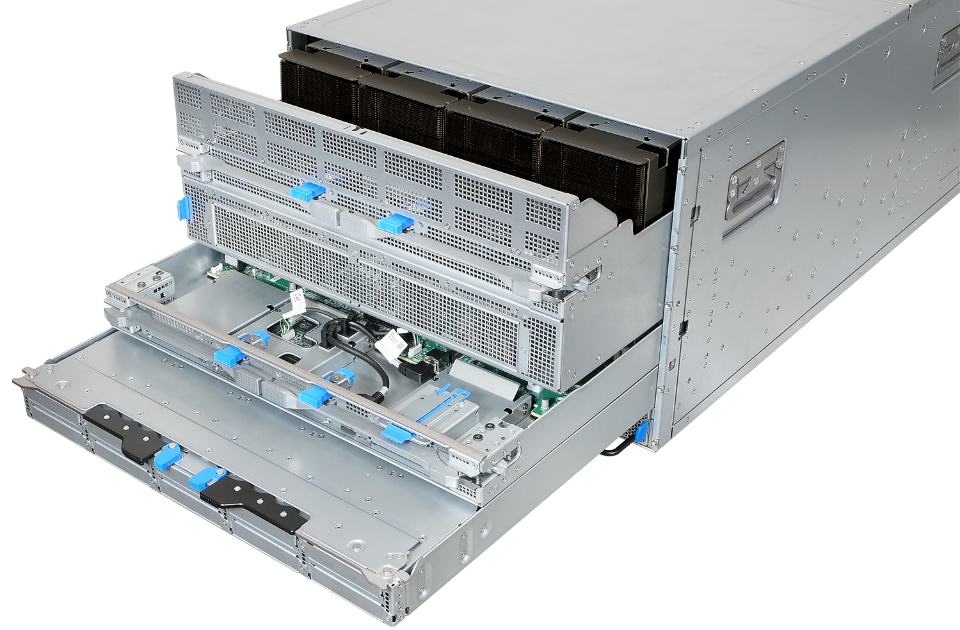 The architecture is designed around a toolless modular philosophy. The modular design of this 7U system allows for major components in the system chassis to be removed and replaced without completely unmounting it from the rack for better serviceability and increased system uptime. This innovative design allows for forward support of next generation CPUs and GPUs with a tool-less architecture that simplifies maintenance and upgrades.